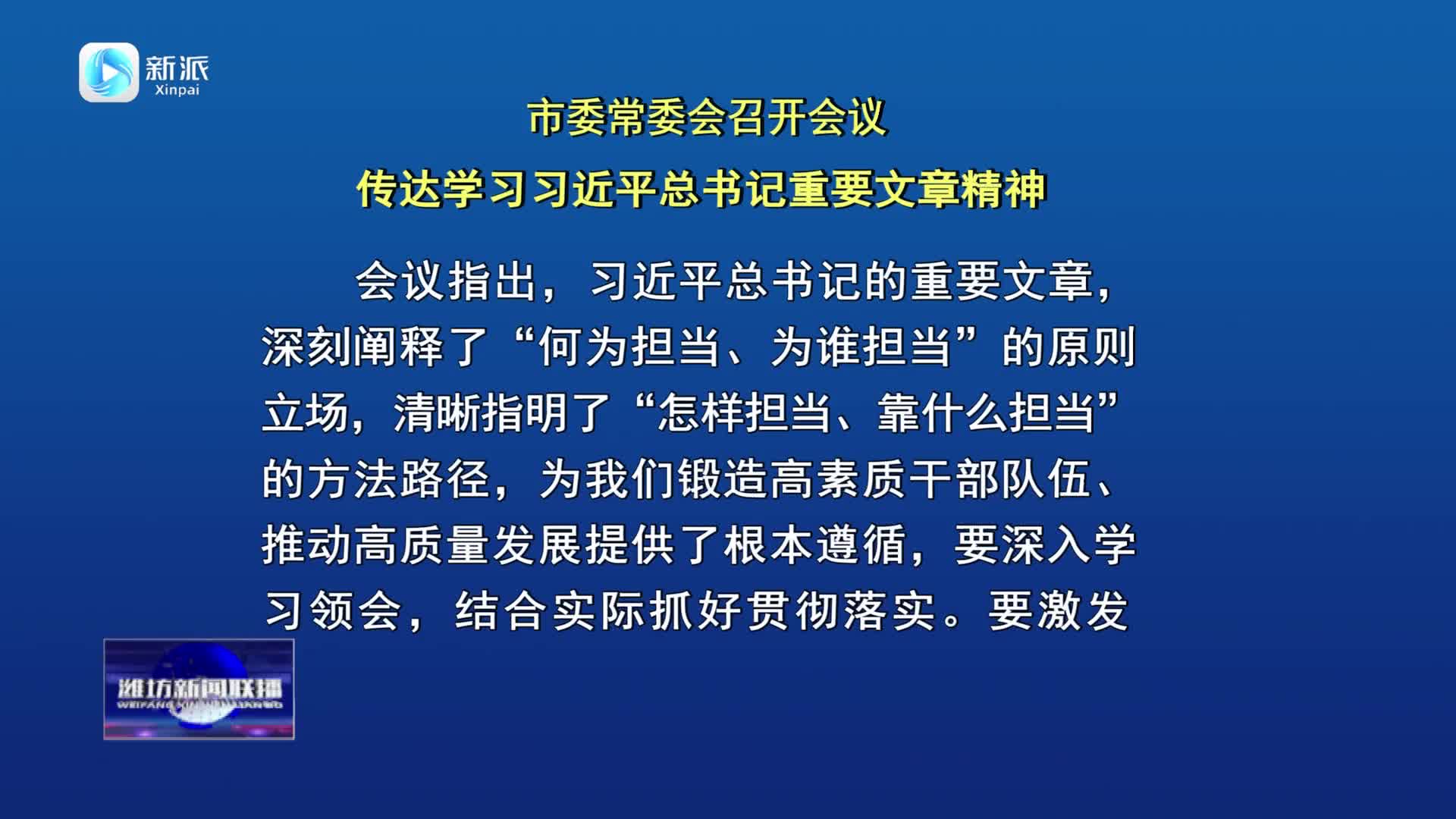 【濰坊新聞聯(lián)播】市委常委會(huì)召開(kāi)會(huì)議 傳達(dá)學(xué)習(xí)習(xí)近平總書(shū)記重要文章精神