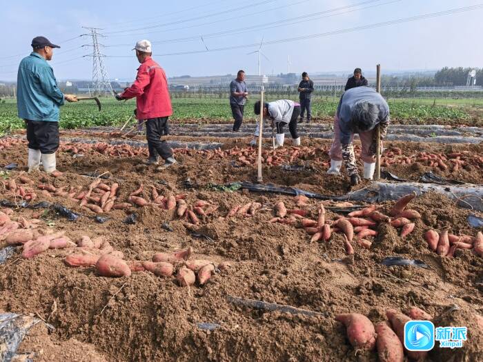 新派訊 10月16日上午,諸城市桃園生態(tài)經(jīng)濟(jì)發(fā)展區(qū)(下稱“桃園區(qū)”)紅薯種植基地上,20多名農(nóng)民正在用镢頭人工搶收紅薯,每棵紅薯結(jié)果5-8個(gè),長(zhǎng)條狀的紅薯個(gè)頭均勻,密密麻麻擺成長(zhǎng)龍呈現(xiàn)在眼前,農(nóng)民臉上笑逐顏開(kāi)。