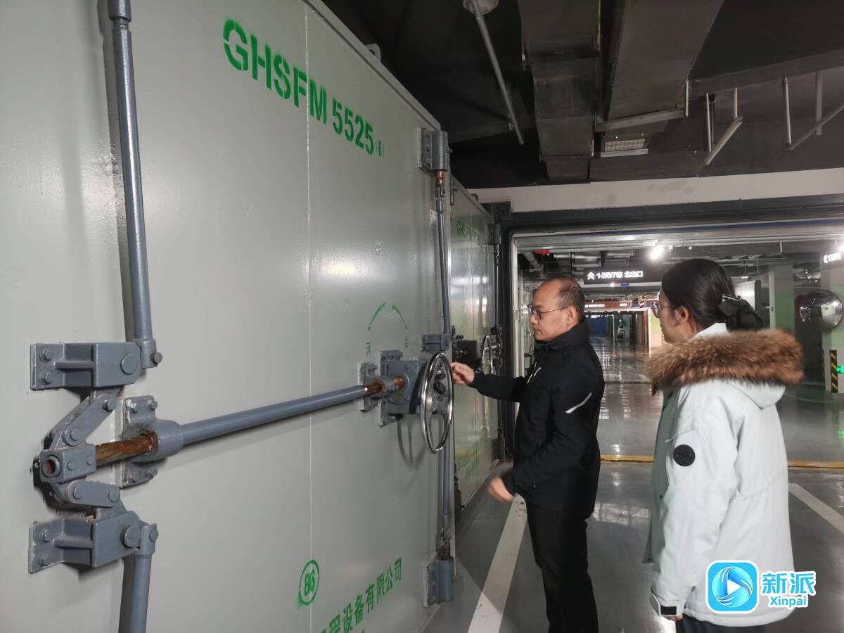 大家在小區(qū)的地下停車場(chǎng)里,看到一個(gè)高約3.5米的鋼結(jié)構(gòu)鐵門,這道門敞開著,平時(shí)不影響車輛行人進(jìn)出,市民用手推了推,發(fā)現(xiàn)非常重。市國(guó)動(dòng)辦工作人員介紹,這是一道人防工程防護(hù)密閉門,門非常厚實(shí),開關(guān)都有竅門。這道門非常關(guān)鍵,像戰(zhàn)時(shí)、災(zāi)時(shí)等危急時(shí)刻,把它安全關(guān)閉后,可以隔絕空襲武器的沖擊波以及一些有毒有害氣體侵襲到人防工程內(nèi)部空間,保護(hù)工程內(nèi)部掩蔽人員物資安全。