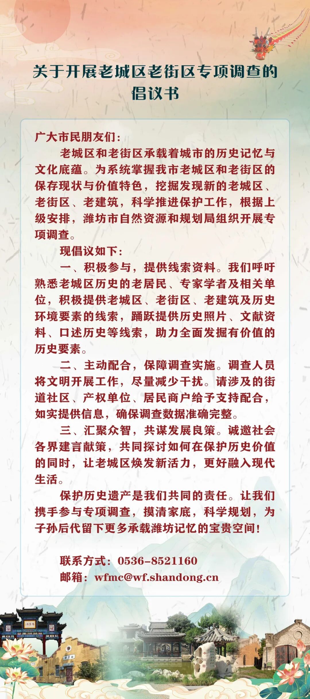 保護歷史遺產(chǎn)是我們共同的責(zé)任。讓我們攜手參與專項調(diào)查,摸清家底,科學(xué)規(guī)劃,為子孫后代留下更多承載濰坊記憶的寶貴空間!