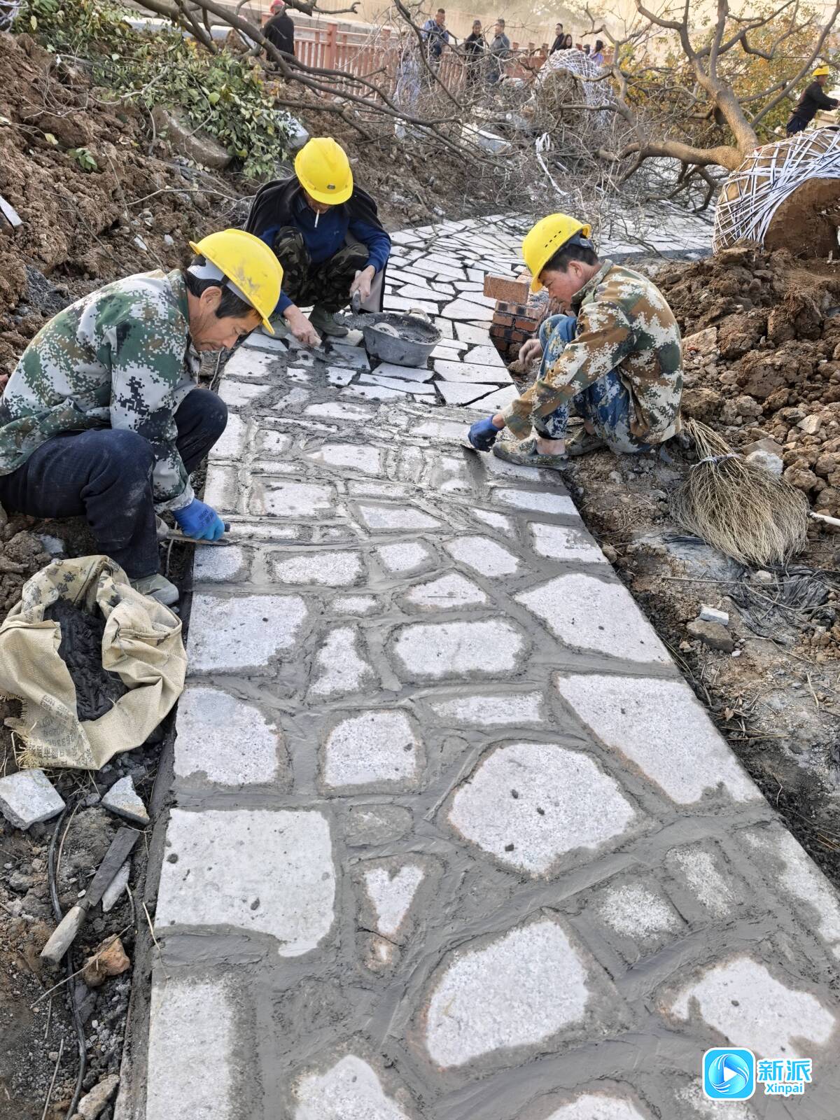 近日,記者在東山坡村看到,多個施工隊伍正在搶工期加速建設(shè),有的鋪設(shè)彩石便道,有的栽植稀有綠化樹木,有的沿河安裝扶手護欄,還有正在建設(shè)特色民宿,一派熱火朝天的繁忙景象。