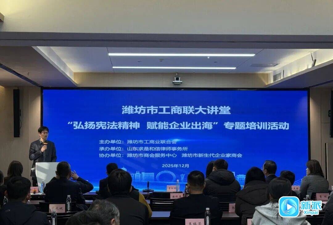 新派訊 為深入學習貫徹憲法精神,提升企業(yè)家法治素養(yǎng)與守法用法意識,依法保障企業(yè)家合法權益,助力濰坊企業(yè)穩(wěn)妥有序“走出去”拓展海外市場,12月4日,濰坊市相關部門聯(lián)合律師事務所舉辦“弘揚憲法精神 賦能企業(yè)出海”專題培訓活動。