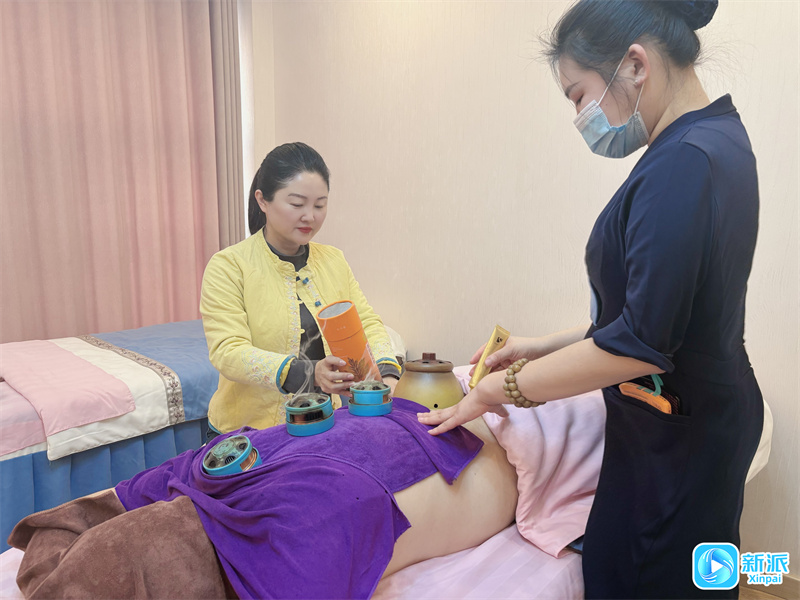 “艾草可以補(bǔ)陽氣,除寒濕。我們?cè)诮?jīng)絡(luò)推拿的基礎(chǔ)上,輔助艾灸刺激體表穴位或特定部位,調(diào)整人體紊亂的生理生化功能,達(dá)到保健養(yǎng)生的效果?!币亮⑺鼓蒺B(yǎng)生會(huì)館魯東店店長(zhǎng)郭金香說。