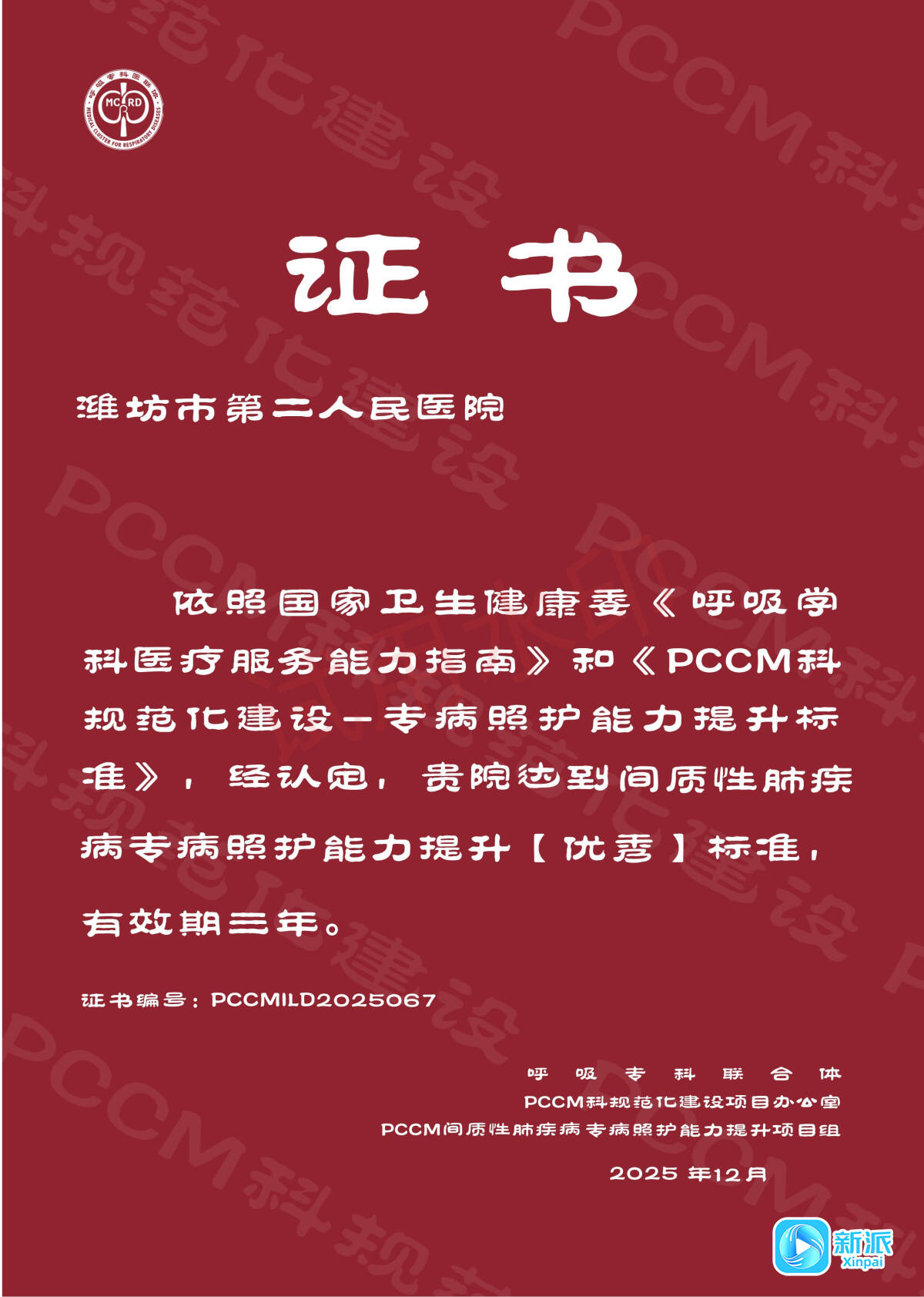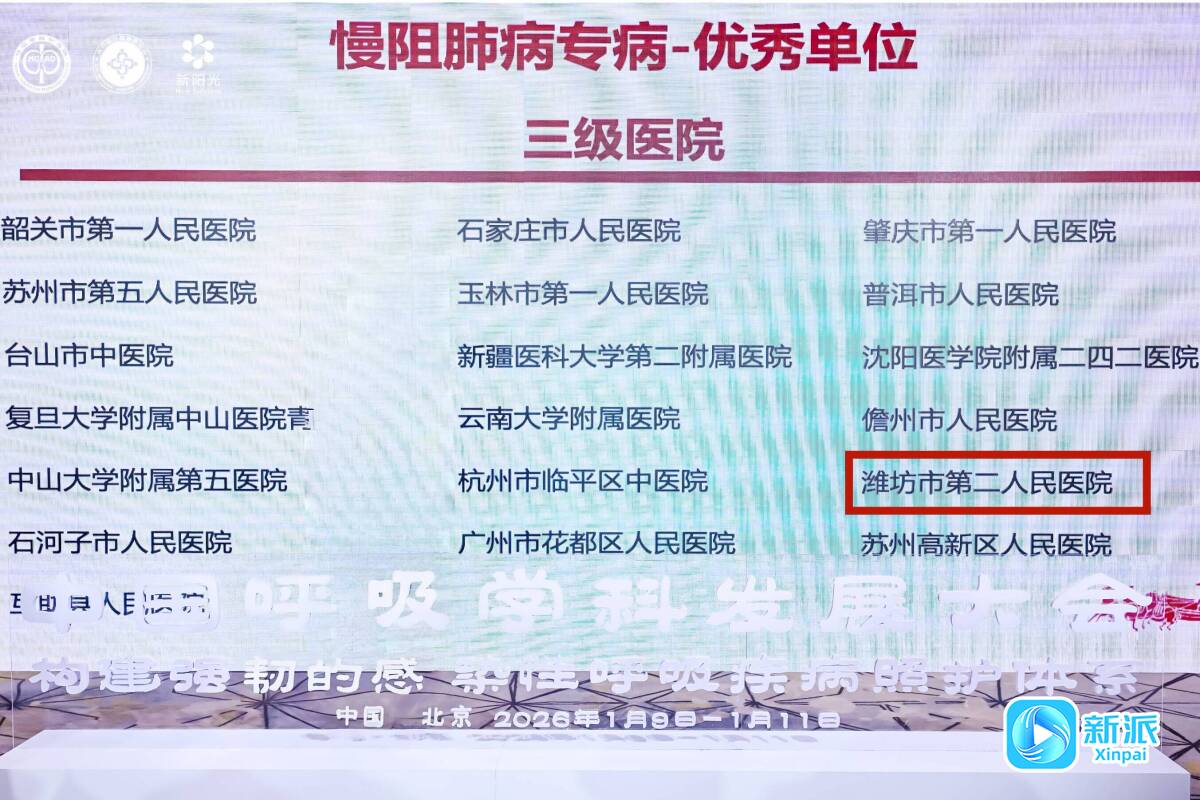 新派訊 1月10日至11日,2026年中國(guó)呼吸學(xué)科發(fā)展大會(huì)在北京舉行。會(huì)上根據(jù)2025年P(guān)CCM科規(guī)范化建設(shè)3.0版評(píng)審標(biāo)準(zhǔn),公布了2025年度PCCM(呼吸與危重癥醫(yī)學(xué))5個(gè)專病的照護(hù)能力認(rèn)定結(jié)果,濰坊市第二人民醫(yī)院(濰坊市呼吸病醫(yī)院)憑借在呼吸領(lǐng)域的深厚積淀和扎實(shí)實(shí)踐,在“肺癌與肺結(jié)節(jié)專病照護(hù)能力”“肺炎專病照護(hù)能力”“哮喘專病照護(hù)能力”3個(gè)項(xiàng)目獲評(píng)“示范單位”,“慢阻肺病專病照護(hù)能力”“間質(zhì)性肺疾病專病照護(hù)能力”2個(gè)項(xiàng)目獲評(píng)“優(yōu)秀單位”。這一成績(jī)的取得,不僅是對(duì)醫(yī)院呼吸學(xué)科綜合實(shí)力的高度認(rèn)可,更標(biāo)志著醫(yī)院的呼吸健康照護(hù)體系建設(shè)邁上新臺(tái)階。