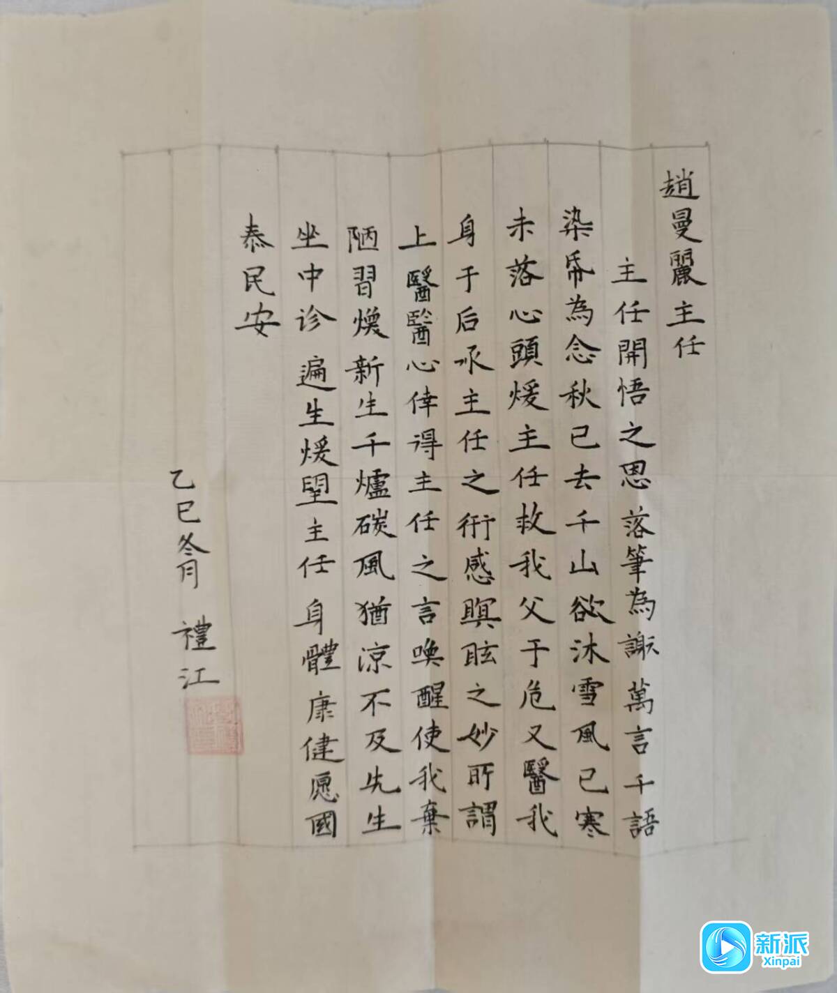 近日,67歲的周先生(化姓)在家屬的陪同下,來到濰坊市中醫(yī)院腦病六科復(fù)診。眼前的他,與初診時判若兩人:步伐穩(wěn)健有力,眼神明亮有神,交流順暢自如,許多日常事務(wù)也能自主完成。周先生的家屬懷著無比感激的心情,將一封用宣紙毛筆書寫的感謝信鄭重地交到了趙曼麗的手中。信上的每一個字,都飽含著真情,寫的是“感恩”,更是一個家庭從無助到重燃希望的艱難歷程。