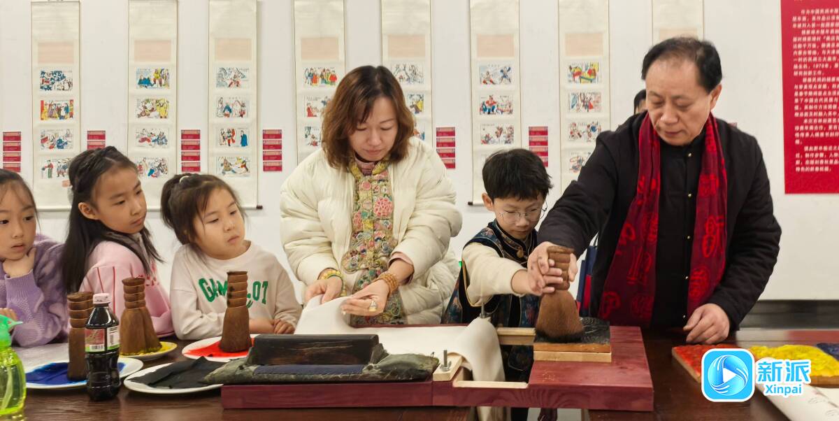 步入展廳,一股墨香混合木香撲面而來(lái),張大功在雕刻繁復(fù)的木版上均勻敷色,隨后鋪紙、壓實(shí),一張色彩明艷的《年年有余》便躍然紙上?,F(xiàn)場(chǎng)展示的年畫(huà)印制過(guò)程,吸引了眾多年輕觀眾好奇的目光。張大功還應(yīng)邀舉行了以“觸碰木版的溫度——木版年畫(huà)印刷現(xiàn)場(chǎng)體驗(yàn)!為主題的演講和公教活動(dòng),讓廣大歡眾深入了解楊家埠木版年畫(huà)的發(fā)展歷程和制作流程。