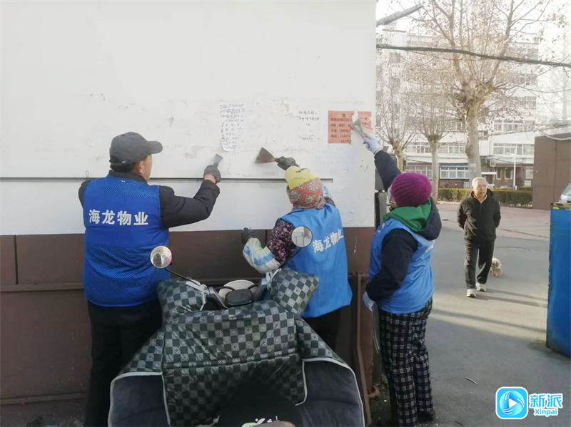 海龍社區(qū)組織物業(yè)對(duì)小廣告進(jìn)行清理。