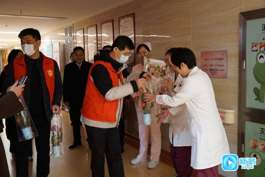 為醫(yī)護(hù)人員送上鮮花和祝福。