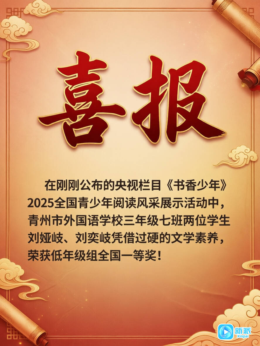 喜報!青州市外國語學校兩位同學獲全國青少年閱讀風采展總展評一等獎