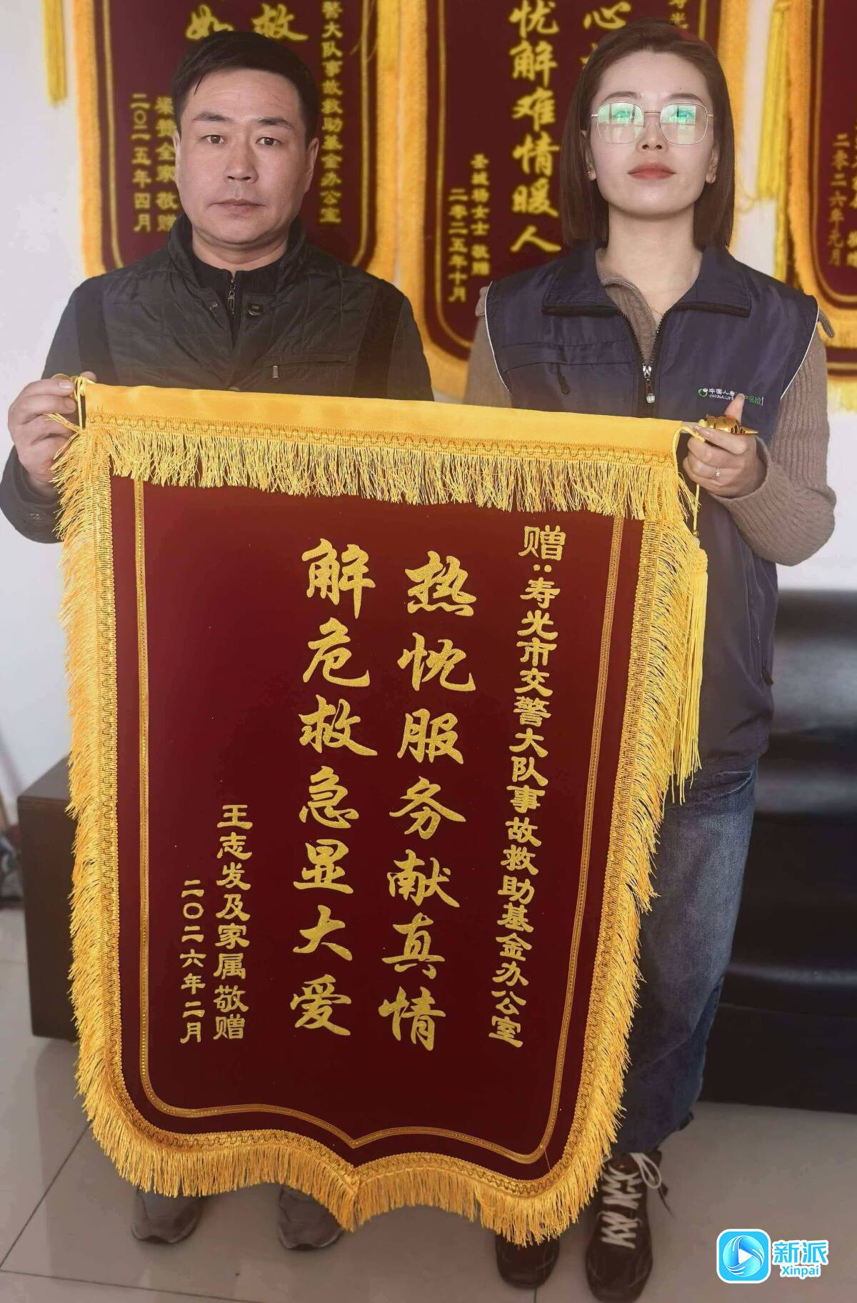 新派訊 近日,一名傷者家屬將一面印有“熱忱服務(wù)獻真情 解危救急顯大愛”的錦旗送到中國人壽財險道路救助基金壽光救助辦,緊握工作人員雙手連連致謝,感謝救助基金在危急時刻伸出援手。