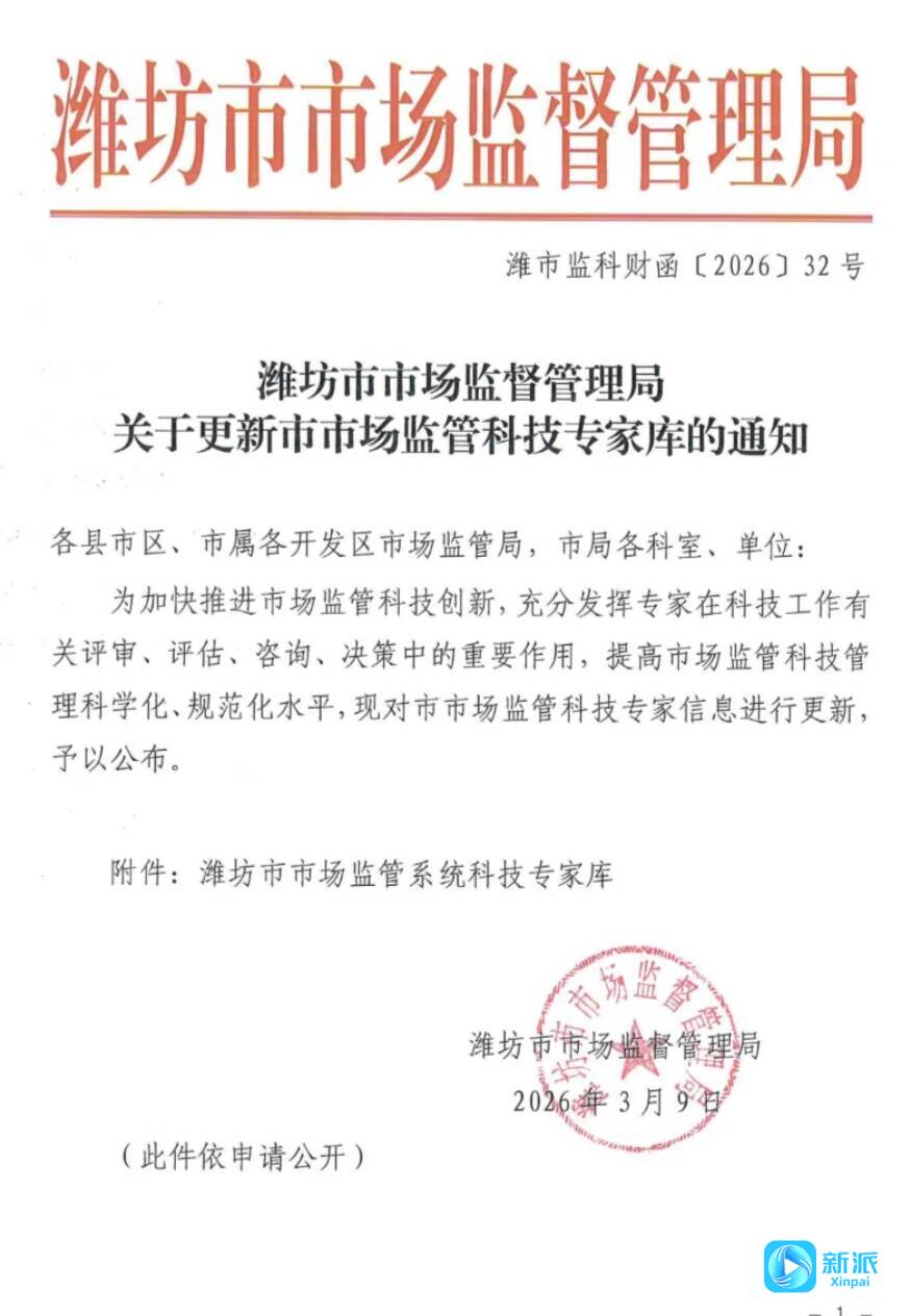 新派訊 3月9日,濰坊市市場監(jiān)督管理局下發(fā)了《關(guān)于更新市市場監(jiān)管科技專家?guī)斓耐ㄖ凡⒐剂嗣麊危R朐縣鋁型材質(zhì)檢中心趙興廷、劉國良、張文東3名同志成功入選市級專家?guī)臁?/span>