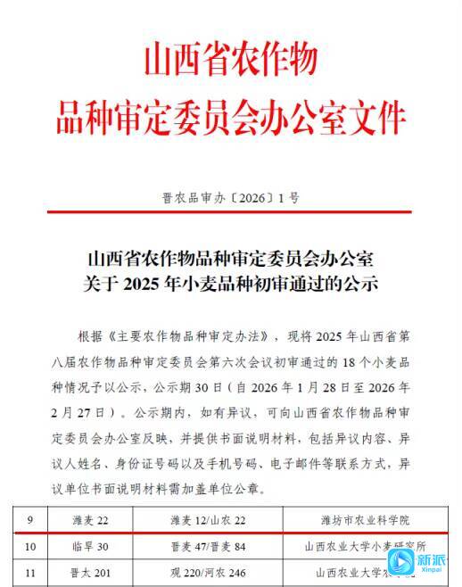新派訊 校院協(xié)同育良種,濰坊種業(yè)再突破。近日,由濰坊職業(yè)學(xué)院與濰坊市農(nóng)業(yè)科學(xué)院聯(lián)合攻關(guān)培育的小麥新品種濰麥22成功通過山西省農(nóng)作物品種審定委員會初審,這不僅是雙方合作的又一重要成果,也讓我市“濰麥”系列小麥品種再添優(yōu)質(zhì)新丁。