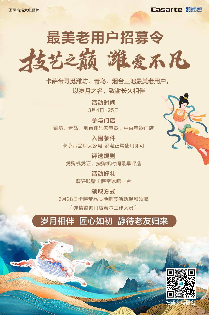 新派訊 春意漸濃,千年非遺匠心將邂逅前沿科技智慧。3月28日,濰百集團攜手國際高端家電品牌卡薩帝,將于濰百集團益家園家電家居Mall(谷德錦店)中庭,重磅開啟“技藝之巔 濰愛不凡”非遺守護之旅暨品質(zhì)煥新節(jié),為鳶都市民呈現(xiàn)一場集文化、科技、福利于一體的品質(zhì)盛會。