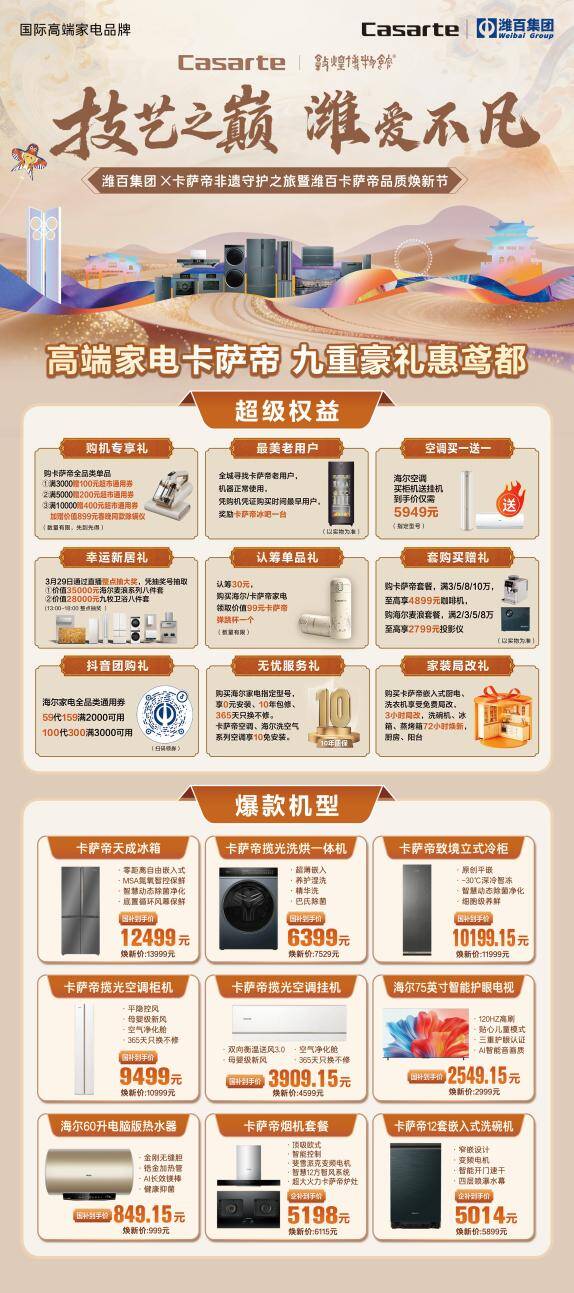 為回饋市民,雙方聯(lián)袂推出九重重磅盛惠,覆蓋購機優(yōu)惠、專屬禮遇、服務(wù)保障等維度?;顒悠陂g,卡薩帝指揮家AI套系等明星產(chǎn)品悉數(shù)亮相,購機享專屬優(yōu)惠,最美老客戶可獲定制禮遇,卡薩帝空調(diào)推出買一送一福利,另有新居補貼、認籌福利、套購滿減等權(quán)益加碼。依托濰百全流程服務(wù)與卡薩帝七星級服務(wù),為消費者提供從選購到維保的一站式體驗,讓品質(zhì)煥新更省心。