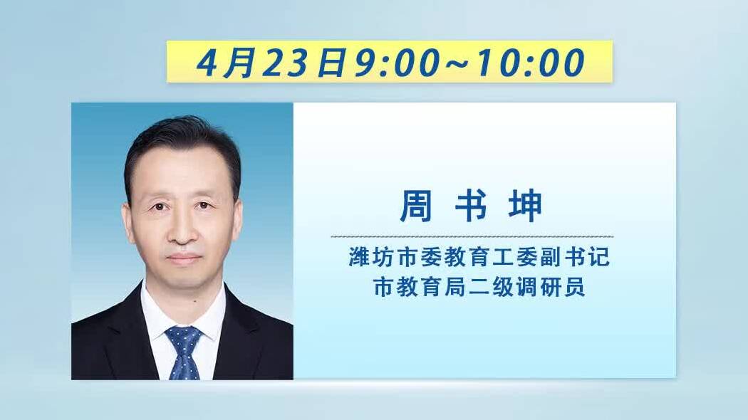 4月23日上午9:00~10:00,濰坊市委教育工委副書記、市教育局二級(jí)調(diào)研員周書坤將走進(jìn)市融媒體中心新聞廣播《政策訪談》欄目直播間,敬請(qǐng)關(guān)注!